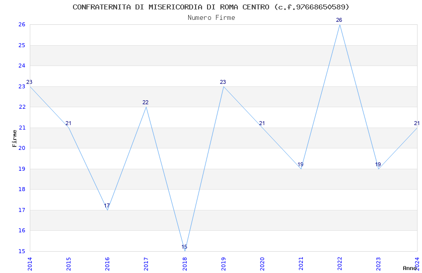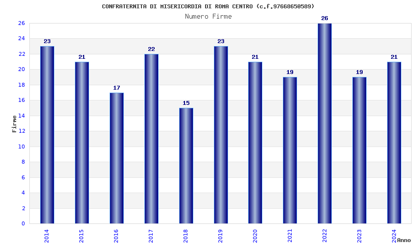 | Anno | Firme | Importi | Media | Naz. | Reg. | Prov. | Comu. |