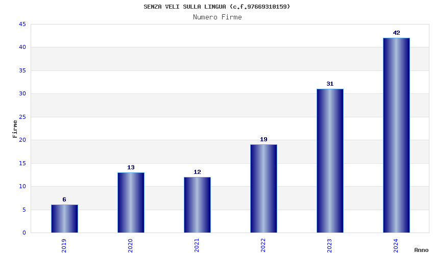 | Anno | Firme | Importi | Media | Naz. | Reg. | Prov. | Comu. |