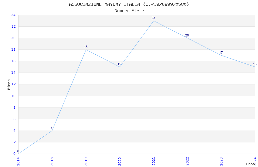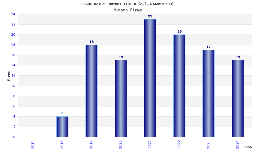 | Anno | Firme | Importi | Media | Naz. | Reg. | Prov. | Comu. |