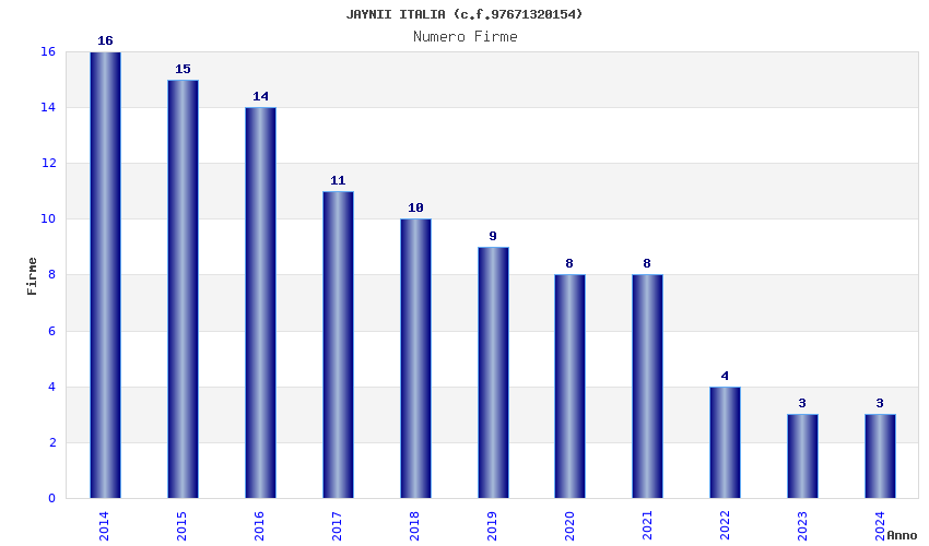| Anno | Firme | Importi | Media | Naz. | Reg. | Prov. | Comu. |