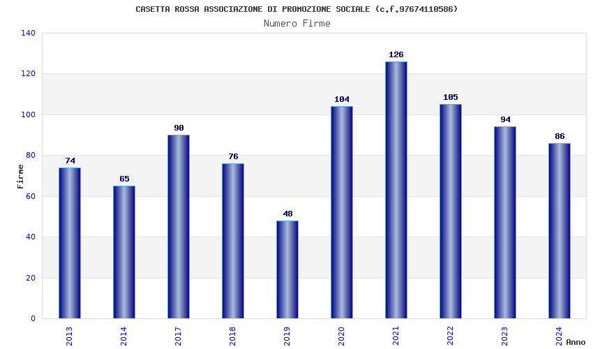 | Anno | Firme | Importi | Media | Naz. | Reg. | Prov. | Comu. |