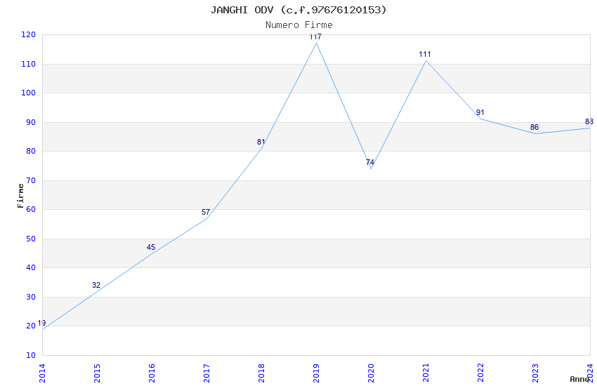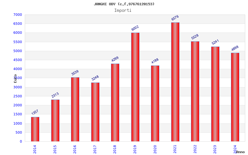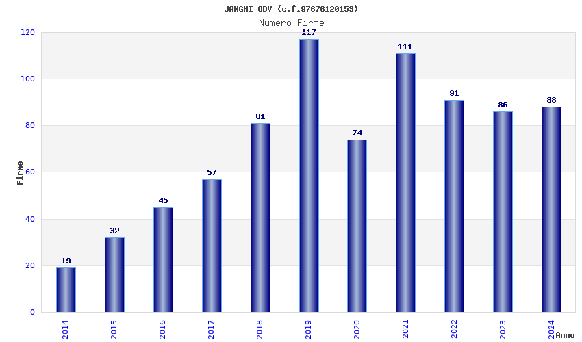 | Anno | Firme | Importi | Media | Naz. | Reg. | Prov. | Comu. |