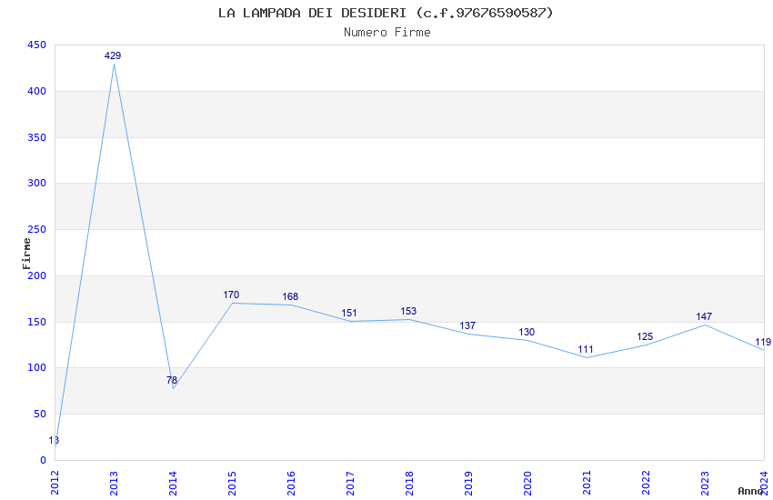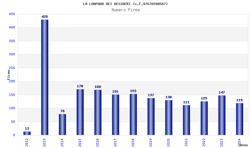 | Anno | Firme | Importi | Media | Naz. | Reg. | Prov. | Comu. |