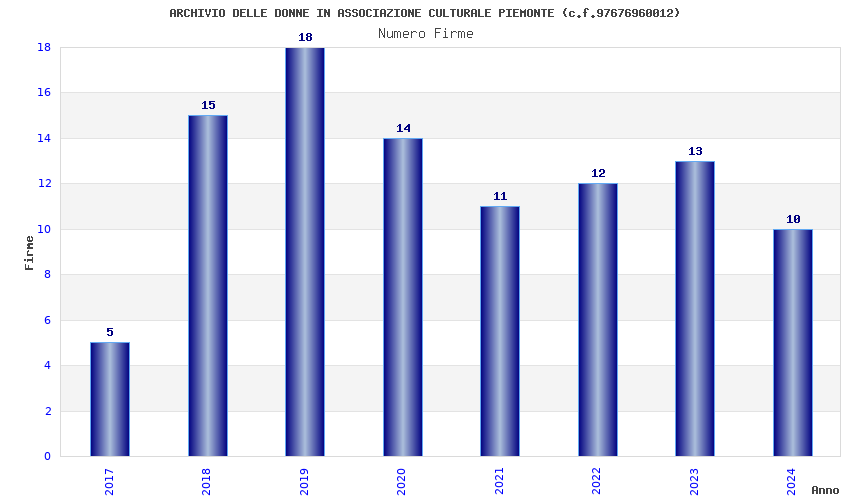 | Anno | Firme | Importi | Media | Naz. | Reg. | Prov. | Comu. |