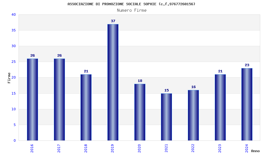 | Anno | Firme | Importi | Media | Naz. | Reg. | Prov. | Comu. |