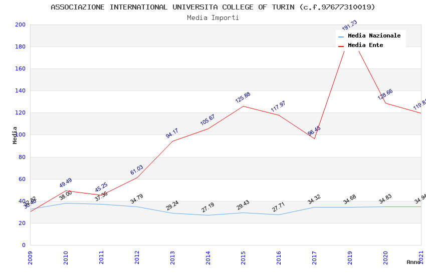 | Anno | Firme | Importi | Media | Naz. | Reg. | Prov. | Comu. |