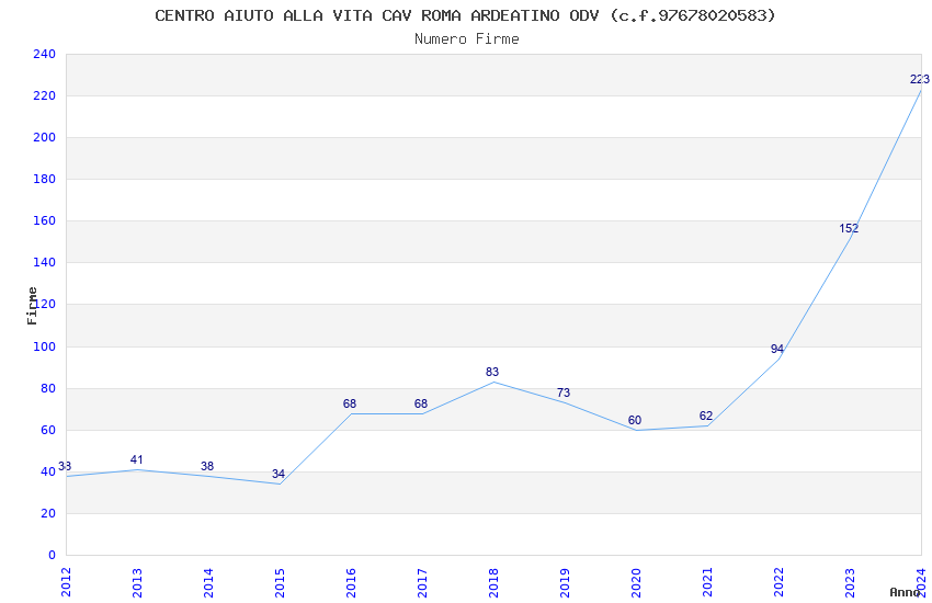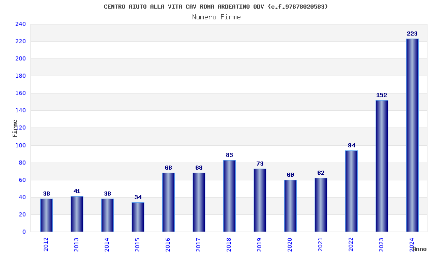 | Anno | Firme | Importi | Media | Naz. | Reg. | Prov. | Comu. |