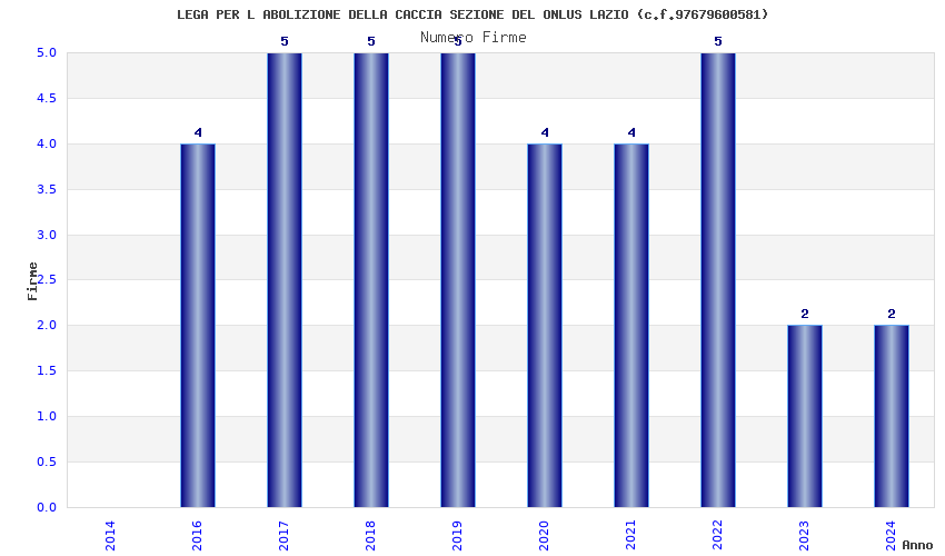 | Anno | Firme | Importi | Media | Naz. | Reg. | Prov. | Comu. |