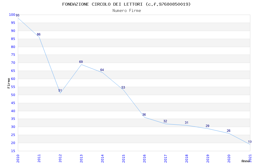 | Anno | Firme | Importi | Media | Naz. | Reg. | Prov. | Comu. |