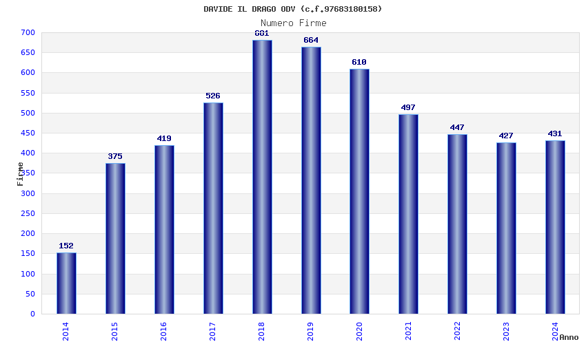 | Anno | Firme | Importi | Media | Naz. | Reg. | Prov. | Comu. |