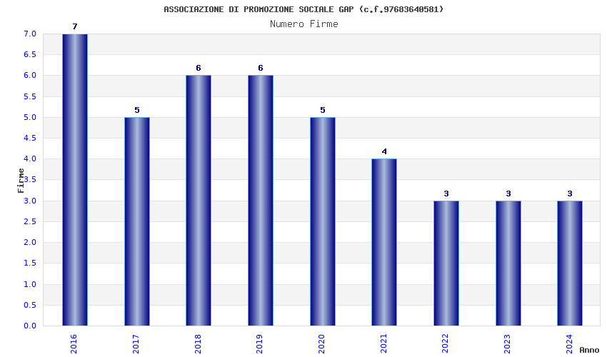 | Anno | Firme | Importi | Media | Naz. | Reg. | Prov. | Comu. |