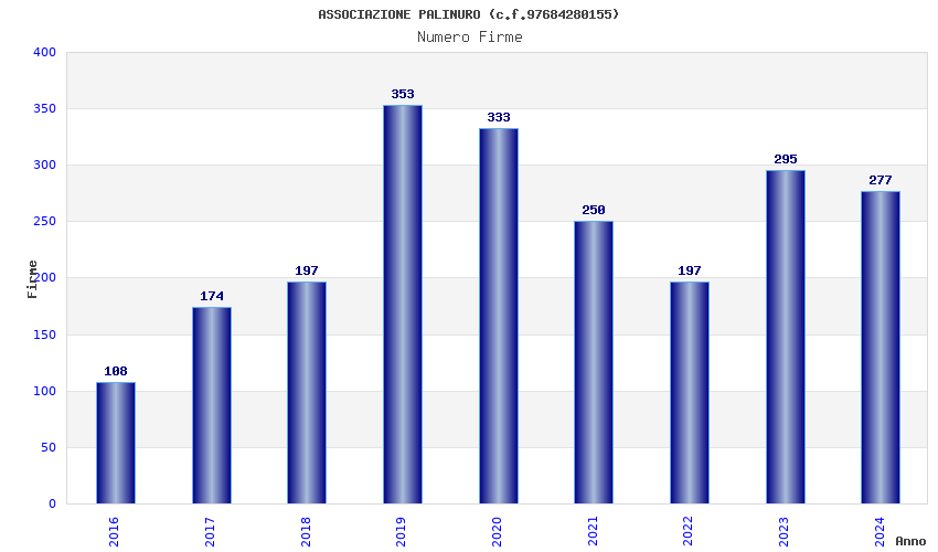 | Anno | Firme | Importi | Media | Naz. | Reg. | Prov. | Comu. |