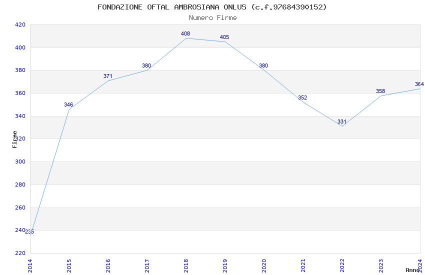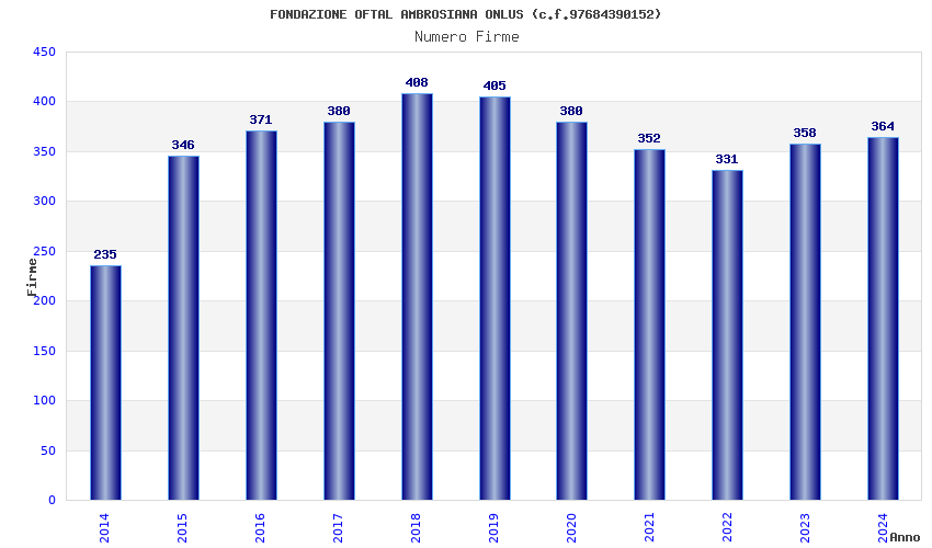 | Anno | Firme | Importi | Media | Naz. | Reg. | Prov. | Comu. |