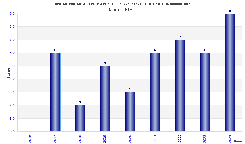 | Anno | Firme | Importi | Media | Naz. | Reg. | Prov. | Comu. |