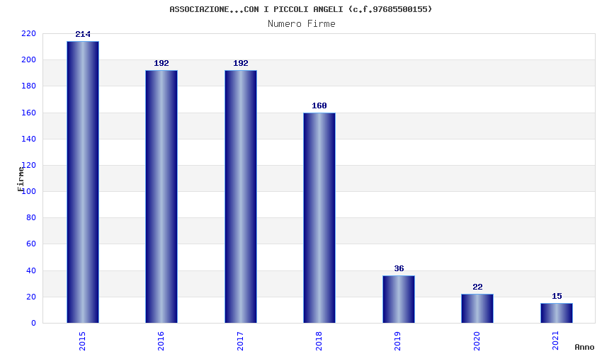 | Anno | Firme | Importi | Media | Naz. | Reg. | Prov. | Comu. |