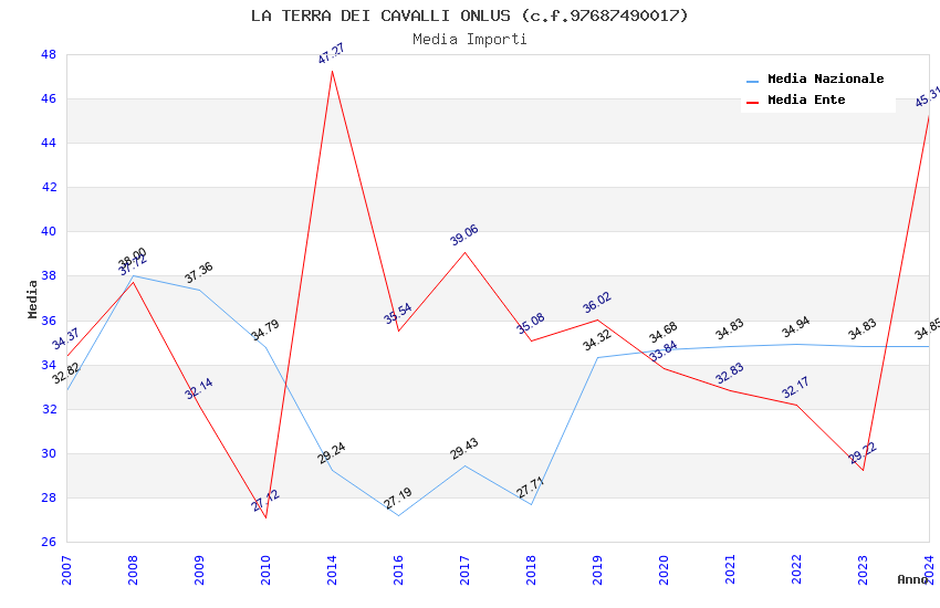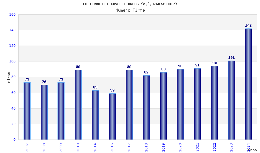 | Anno | Firme | Importi | Media | Naz. | Reg. | Prov. | Comu. |