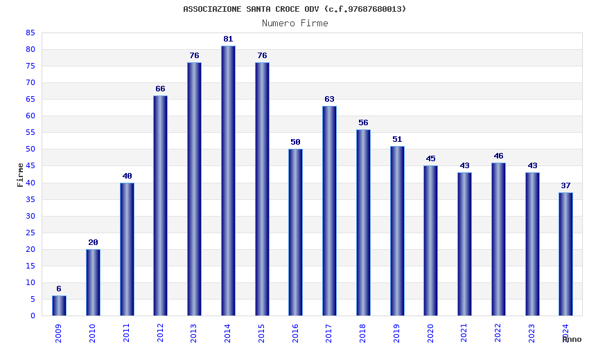 | Anno | Firme | Importi | Media | Naz. | Reg. | Prov. | Comu. |