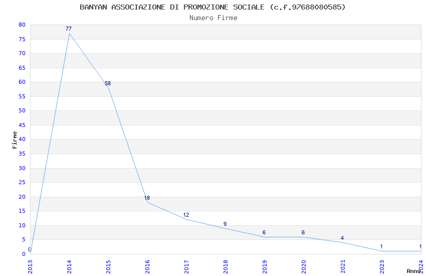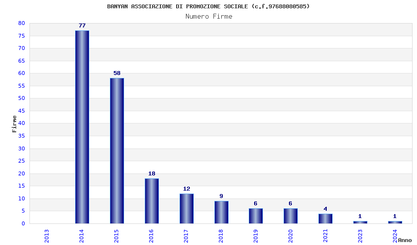 | Anno | Firme | Importi | Media | Naz. | Reg. | Prov. | Comu. |