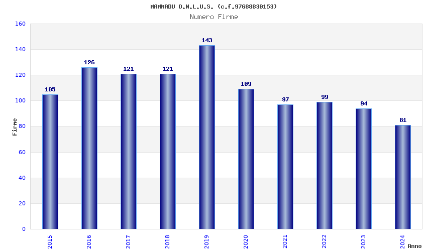 | Anno | Firme | Importi | Media | Naz. | Reg. | Prov. | Comu. |