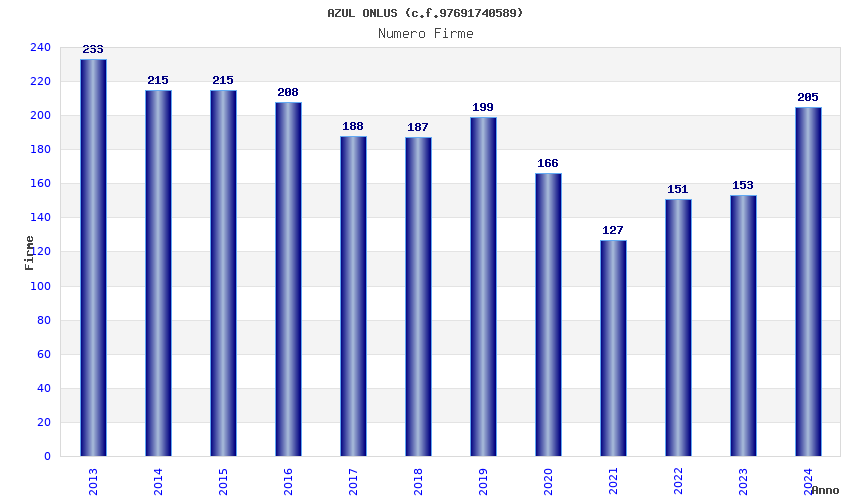 | Anno | Firme | Importi | Media | Naz. | Reg. | Prov. | Comu. |