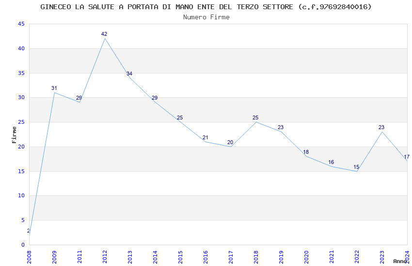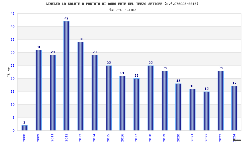 | Anno | Firme | Importi | Media | Naz. | Reg. | Prov. | Comu. |