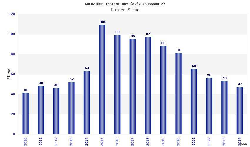 | 2015 | 109 | 5.016,57 | 46,02 | 10.604 | 767 | 414 | 246 |
