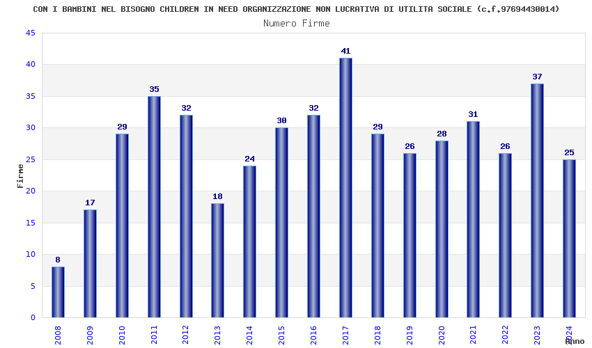 | Anno | Firme | Importi | Media | Naz. | Reg. | Prov. | Comu. |