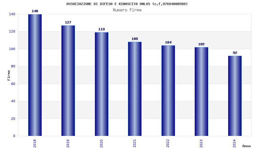 | Anno | Firme | Importi | Media | Naz. | Reg. | Prov. | Comu. |