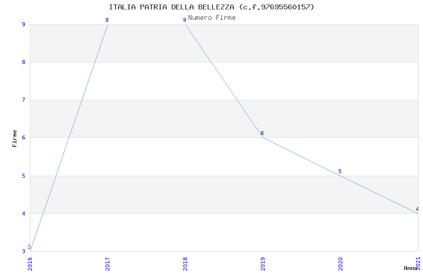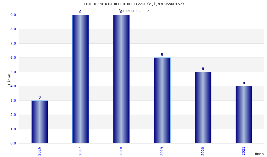 | Anno | Firme | Importi | Media | Naz. | Reg. | Prov. | Comu. |