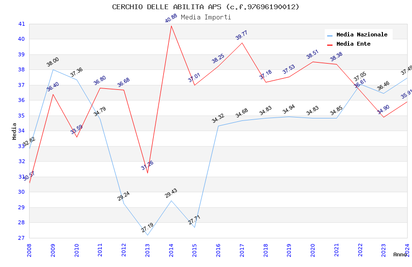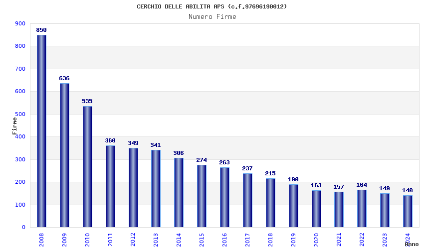 | Anno | Firme | Importi | Media | Naz. | Reg. | Prov. | Comu. |