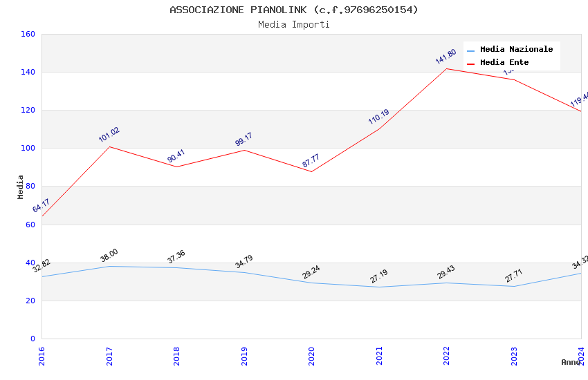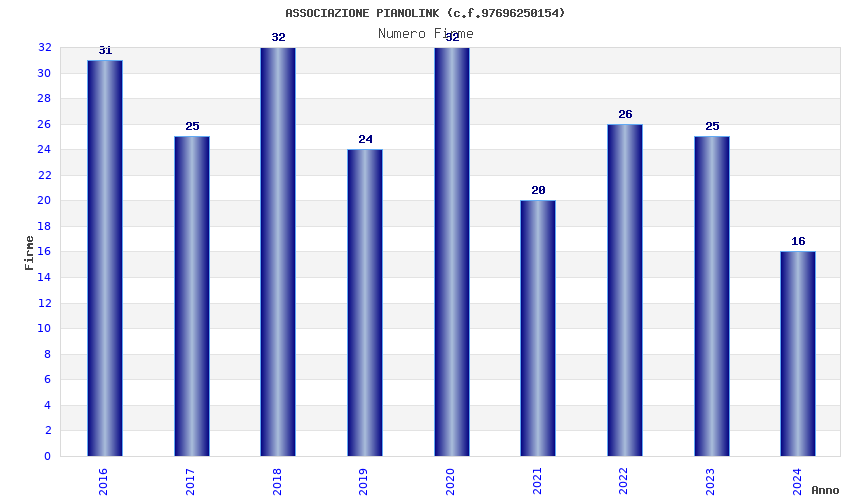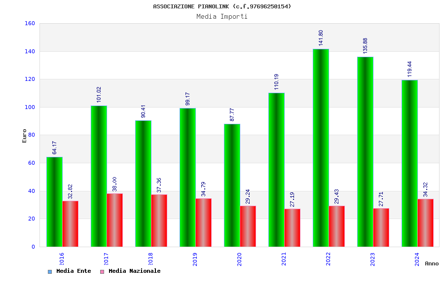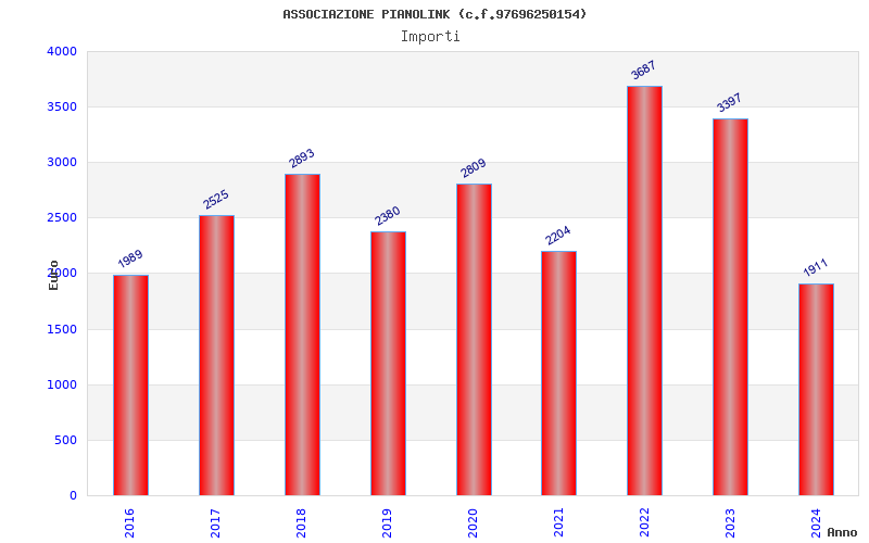 | Anno | Firme | Importi | Media | Naz. | Reg. | Prov. | Comu. |