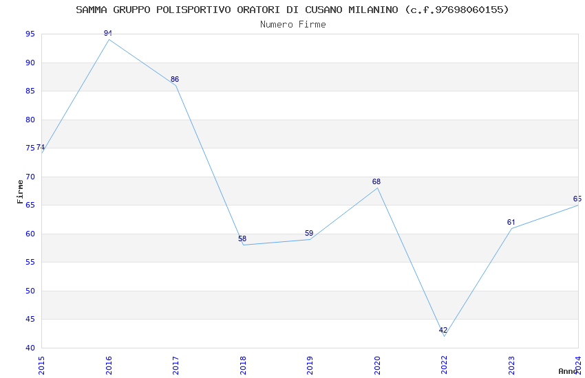 | 2024 | 65 | 1.674,90 | 25,77 | 27.360 | 5.719 | 1.970 | 9 |