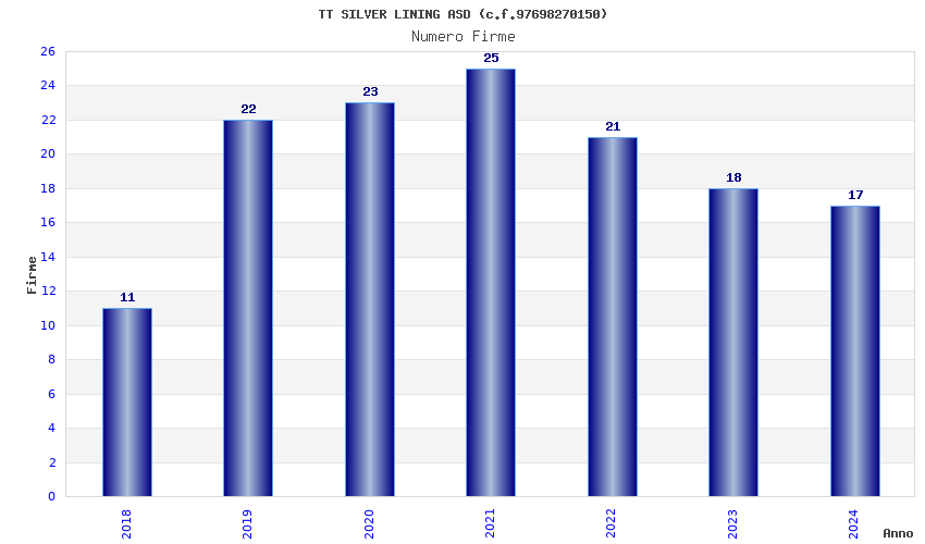 | Anno | Firme | Importi | Media | Naz. | Reg. | Prov. | Comu. |