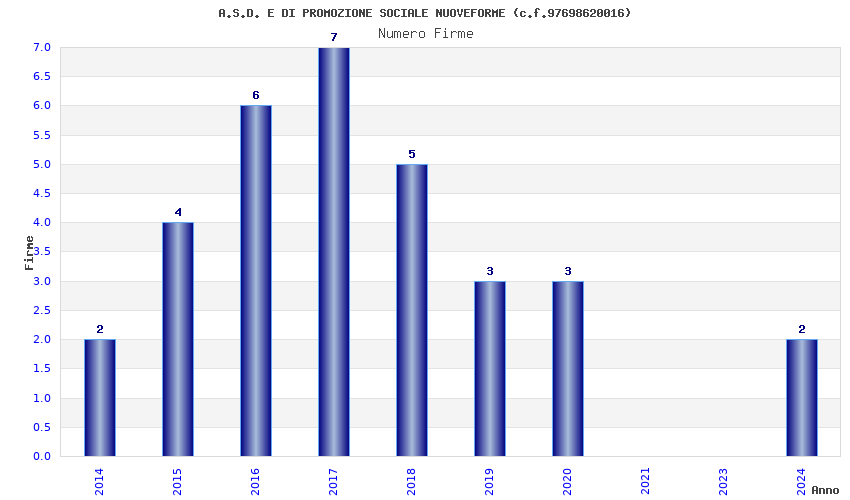 | Anno | Firme | Importi | Media | Naz. | Reg. | Prov. | Comu. |