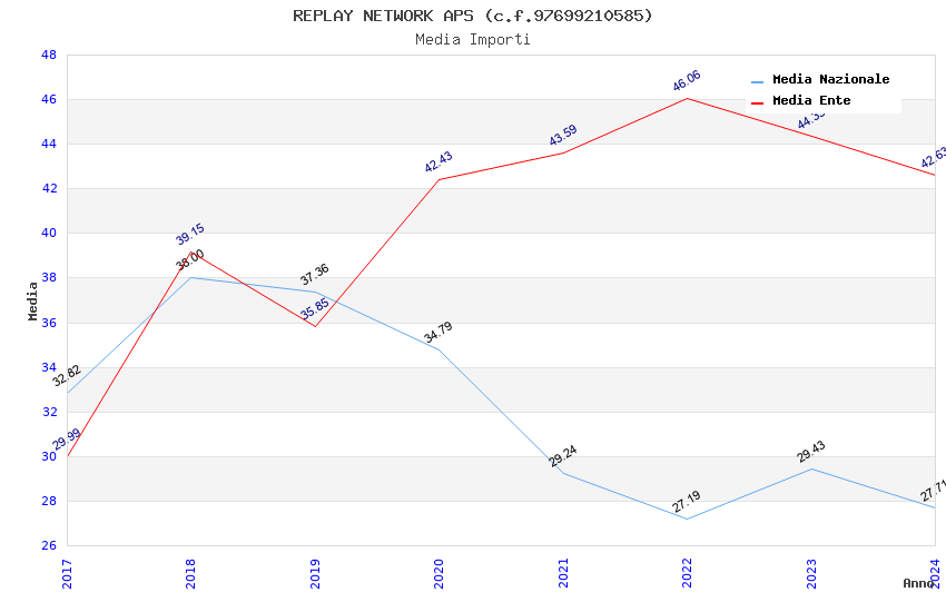 | Anno | Firme | Importi | Media | Naz. | Reg. | Prov. | Comu. |