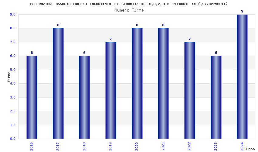 | Anno | Firme | Importi | Media | Naz. | Reg. | Prov. | Comu. |