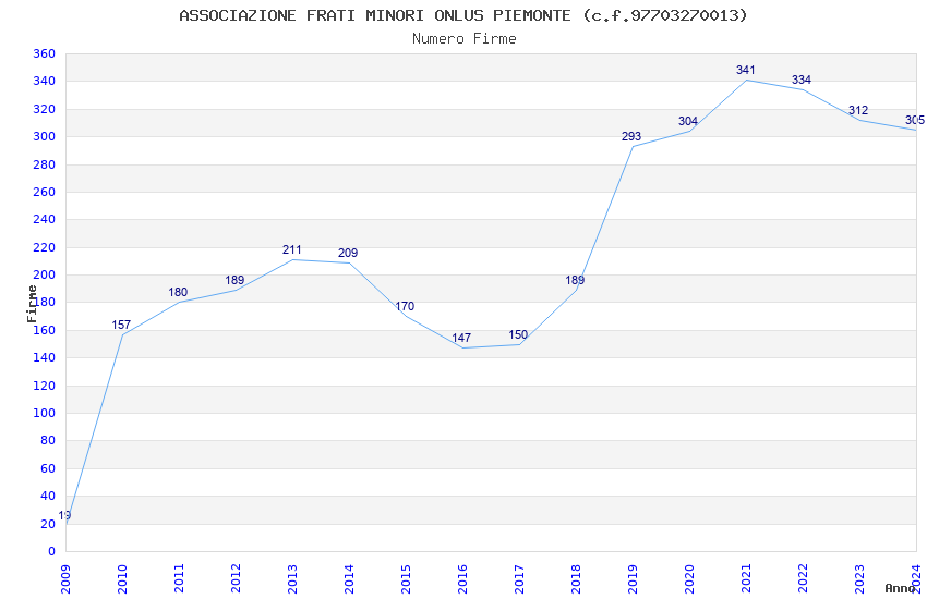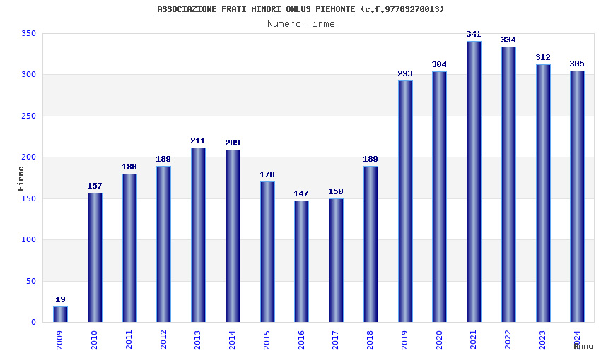 | Anno | Firme | Importi | Media | Naz. | Reg. | Prov. | Comu. |