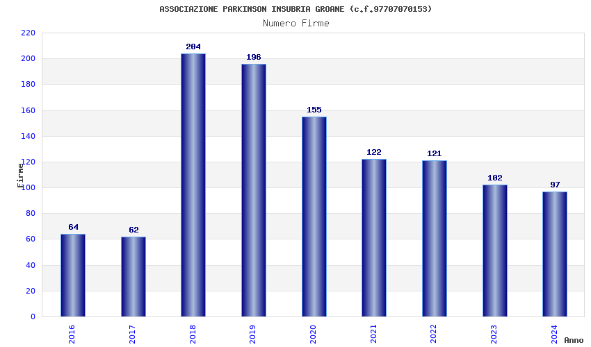 | Anno | Firme | Importi | Media | Naz. | Reg. | Prov. | Comu. |