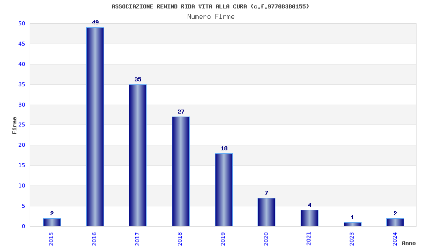 | Anno | Firme | Importi | Media | Naz. | Reg. | Prov. | Comu. |