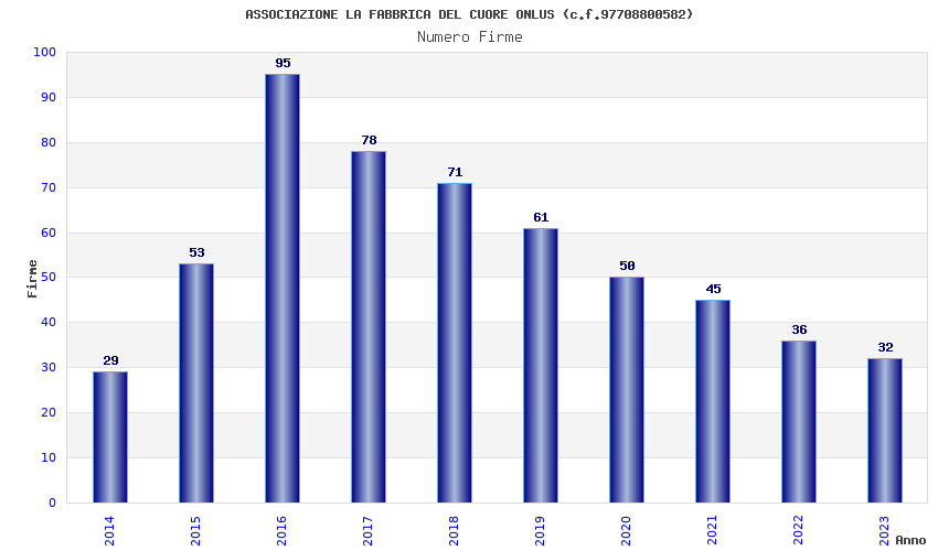 | Anno | Firme | Importi | Media | Naz. | Reg. | Prov. | Comu. |