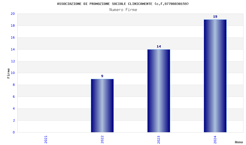 | Anno | Firme | Importi | Media | Naz. | Reg. | Prov. | Comu. |