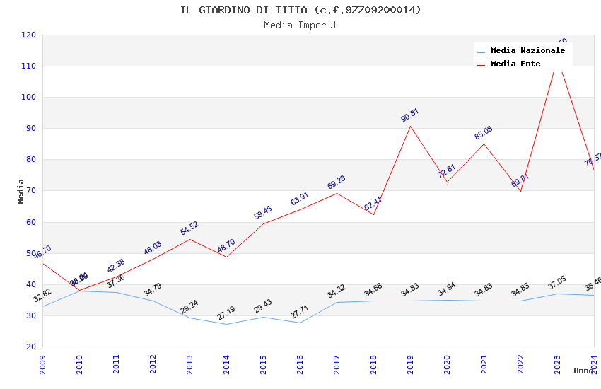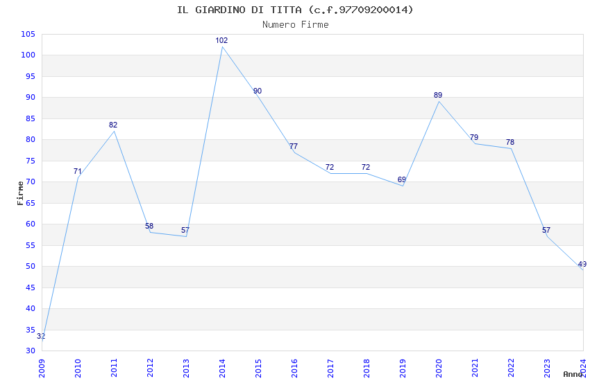 | Anno | Firme | Importi | Media | Naz. | Reg. | Prov. | Comu. |