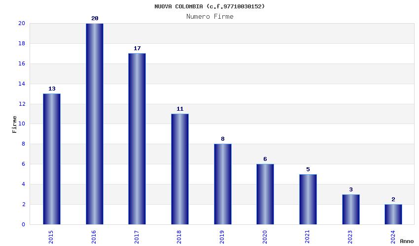 Anno Firme Importi Media Naz. Reg. Prov. Comu.
