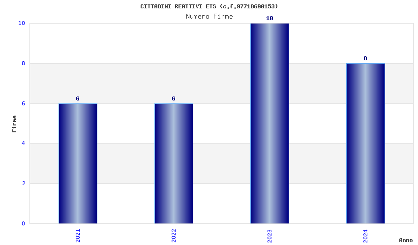 | Anno | Firme | Importi | Media | Naz. | Reg. | Prov. | Comu. |