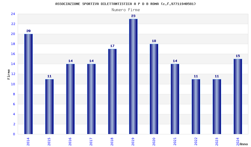 | Anno | Firme | Importi | Media | Naz. | Reg. | Prov. | Comu. |