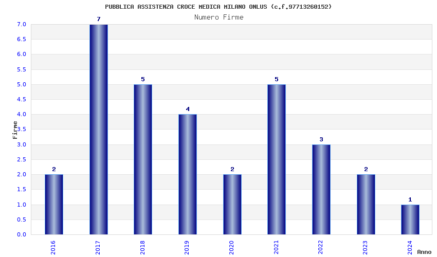 | Anno | Firme | Importi | Media | Naz. | Reg. | Prov. | Comu. |