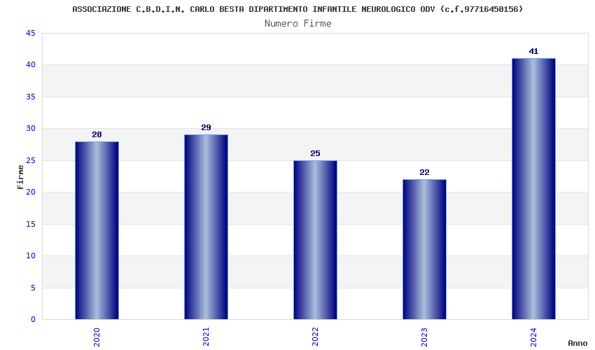 | Anno | Firme | Importi | Media | Naz. | Reg. | Prov. | Comu. |