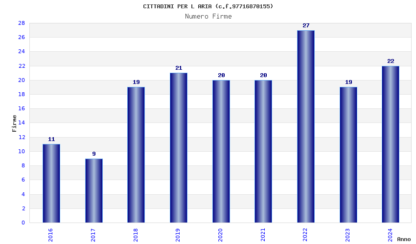 | Anno | Firme | Importi | Media | Naz. | Reg. | Prov. | Comu. |