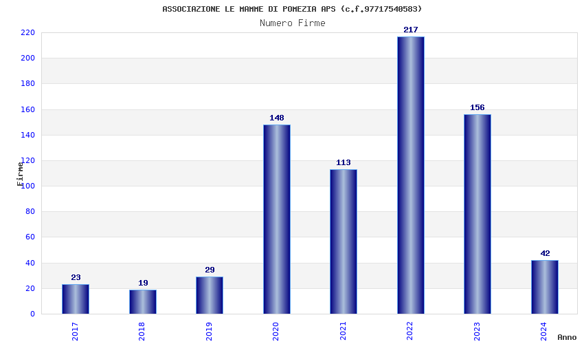 | Anno | Firme | Importi | Media | Naz. | Reg. | Prov. | Comu. |