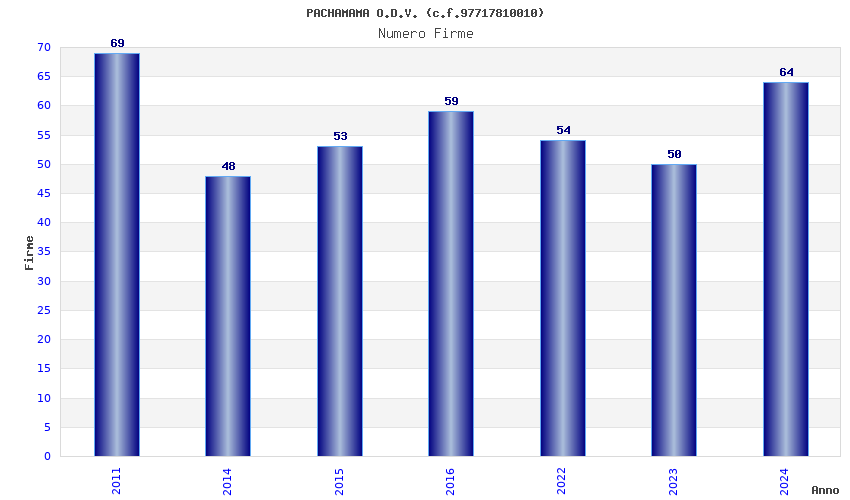 | Anno | Firme | Importi | Media | Naz. | Reg. | Prov. | Comu. |